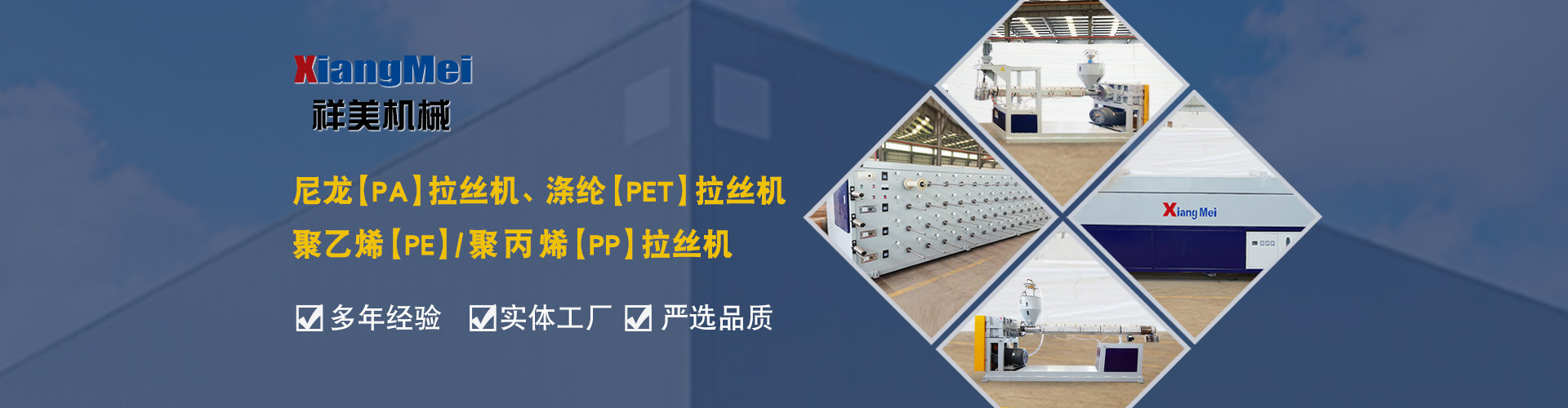 我公司是一家具有30多年專業(yè)生產(chǎn)塑料拉絲機的企業(yè),作為國內(nèi)最早生產(chǎn)圓絲塑料拉絲設(shè)備的企業(yè),成為國內(nèi)同行競相爭仿的標(biāo)桿,公司產(chǎn)品主要可以生產(chǎn)聚乙烯(PE)、尼龍(PA)、聚丙烯(PP)、滌綸(PET)等作原料拉絲機設(shè)備及其配套設(shè)備、鉛芯機設(shè)備及其配套設(shè)備,拉絲機設(shè)備主要生產(chǎn)的產(chǎn)品有單絲、復(fù)絲、扁絲、刷絲、草坪絲、拉鏈絲、割草線等各類線絲,公司產(chǎn)品在國內(nèi)同行業(yè)中性價比高、有良好的口碑,曾獲“國家高新技術(shù)、新產(chǎn)品博覽會金獎”被輕工部定位替代進(jìn)口產(chǎn)品、國家級新產(chǎn)品,并多次獲得省、市科技進(jìn)步獎,產(chǎn)品遍布全國大部分地區(qū),并遠(yuǎn)銷日本、意大利、俄羅斯、韓國、印度、澳大利亞、印度尼西亞、墨西哥、菲律賓、泰國、朝鮮、巴基斯坦、烏茲別克斯坦、越南、馬來西亞、老撾、越南、坦桑尼亞等國家和地區(qū)。 公司實行現(xiàn)代化企業(yè)管理,始終秉承以科技為先導(dǎo),制造為基礎(chǔ),管理為核心的企業(yè)面貌,運用先進(jìn)的生產(chǎn)設(shè)備,創(chuàng)新的思維理念,確保產(chǎn)品多樣化、系列化,高品質(zhì),把誠信、責(zé)任、創(chuàng)新作為祥美人不斷的追求的目標(biāo),為新老客戶打造高品質(zhì)的拉絲設(shè)備。 公司位于黃海之濱、亞歐大陸橋東橋頭堡的海濱城市——連云港,這有海陸空便捷的交通網(wǎng)絡(luò)、風(fēng)景秀麗的山海風(fēng)光,總經(jīng)理江中堯先生攜公司全體員工竭誠歡迎各界人士、中外新老客戶來連洽談業(yè)務(wù)。